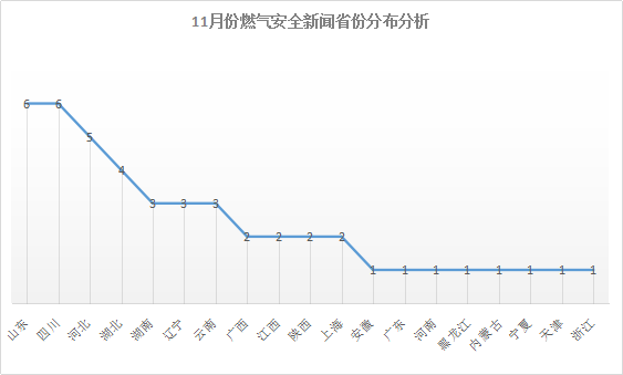 燃气安全事故新闻数超过3起的省份为:山东、四川、河北、湖北、湖南、辽宁、云南。